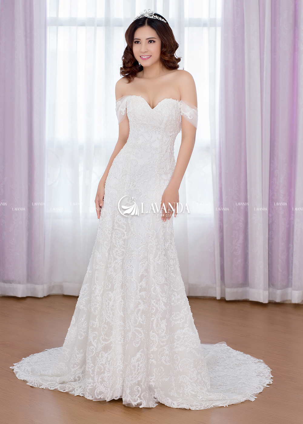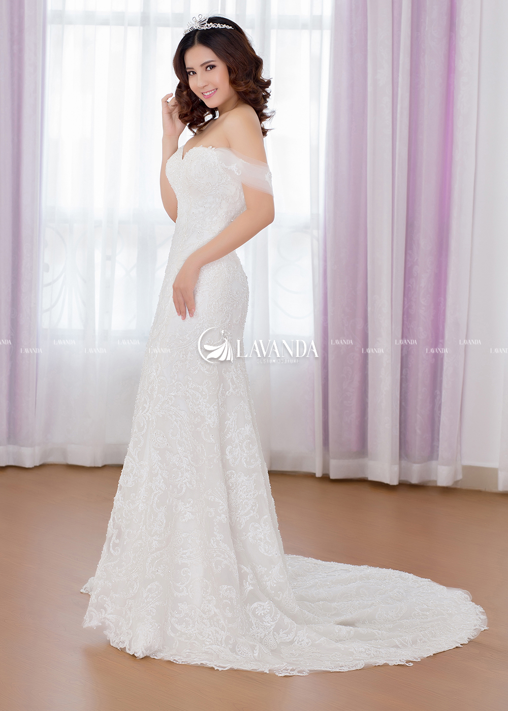 Beaded Lace Off-The-Shoulder Mermaid Wedding Dress
